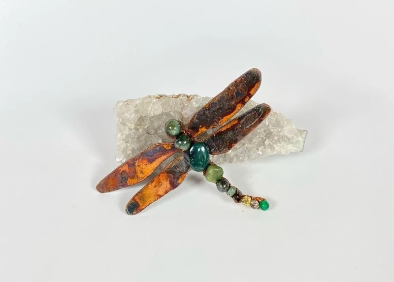 Dragonflies are proudly made from upcycled metals in Canada and adorned with semi precious stones and Swarovski Crystals