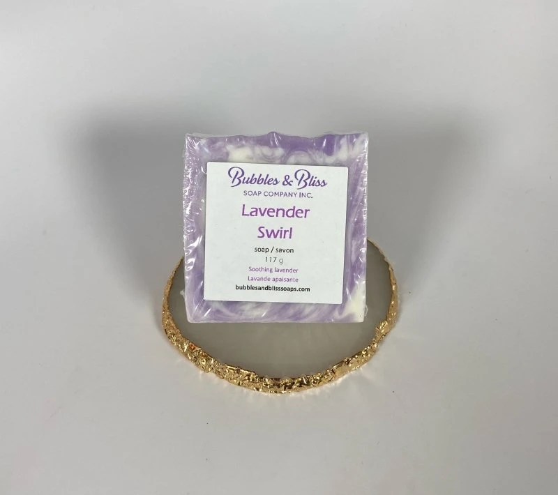 Escape from the chaos & relax with our Lavender soap bar. Â Lavender is known for its relaxing properties, but did you know it is thought to fight acne, sooth eczema & dry skin conditions, is an anti-inflammatory superstar, detoxifies skin, heals injured skin &, if that is not enough, helps prevent wrinkles. Â Who wouldn’t want that in their daily routine?! Â Added to our moisturizing palm base, this soap is sure to make you smile.