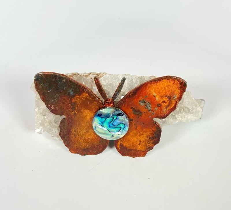 Butterflies are proudly made from upcycled metals in Canada and adorned with Abalone.