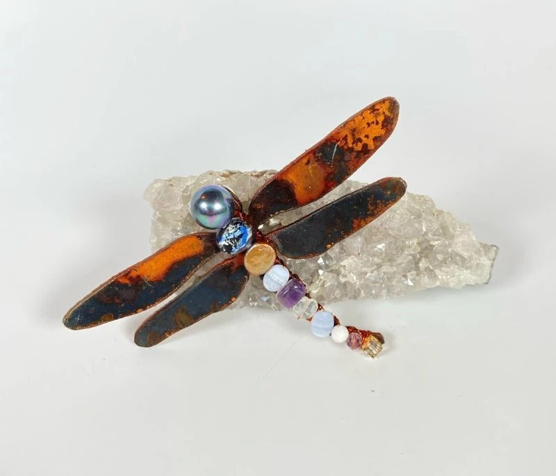 Dragonflies are proudly made from upcycled metals in Canada and adorned with semi precious stones.