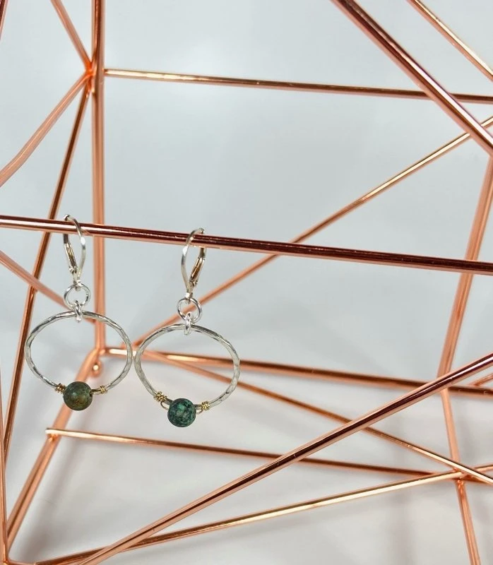 Handmade with care, these lovely matte turquoise stones and hand hammered Sterling Silver are one of a kind!