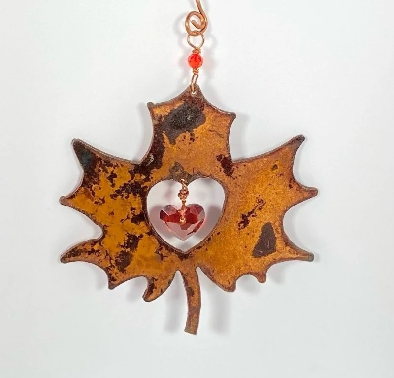 Maple Leaf’s are proudly made from upcycled metals in Canada and adorned with a rust red genuine Swarovski crystal.