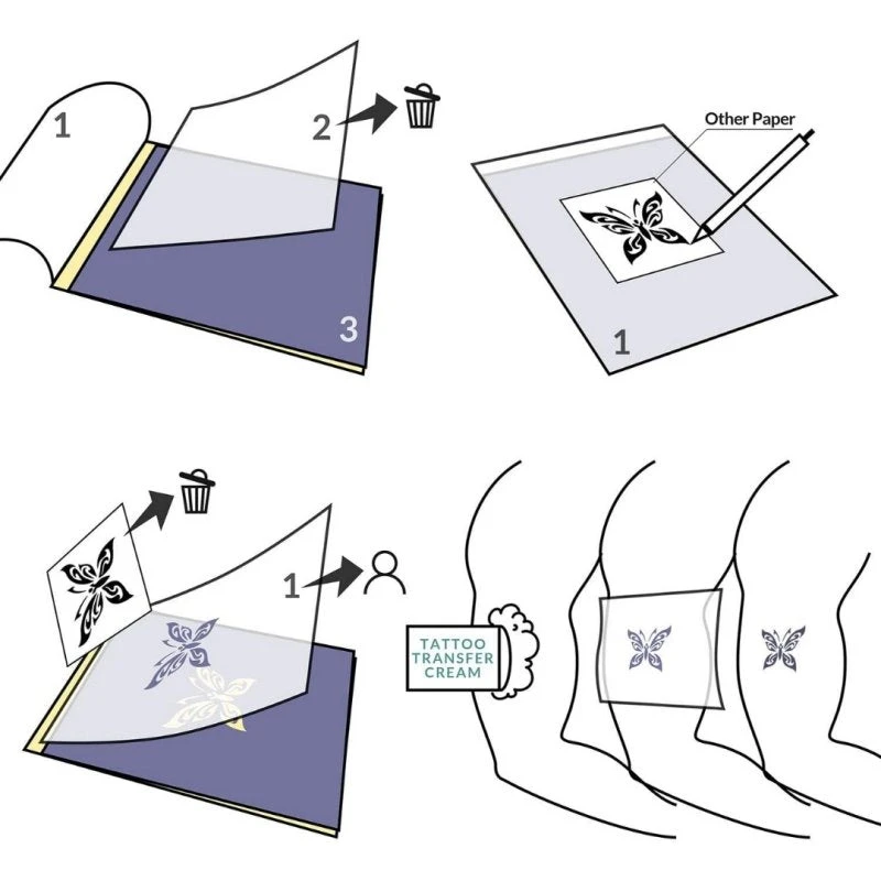 - WORK GREAT: This tattoo transfer paper used for transferring the tattoo design from the paper to the skin. It can be easily, cleanly, and smoothly transferred to the skin.