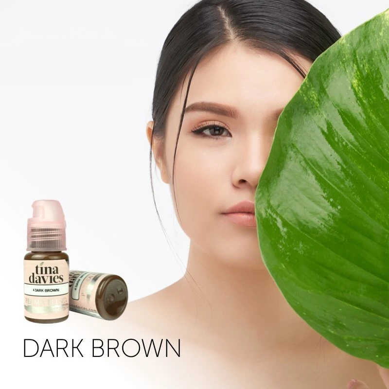 Tina Davies Dark Brown is a neutral/warm, dark value pigment with an orange base. This ultra-concentrated formula will cover old faded orange, green and red PMU.Â